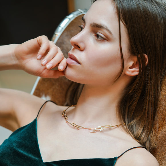 Inspired by the natural beauty of Iceland's waterfalls, the Cascade collection features bright pieces with straight lines, dotted with round white diamonds