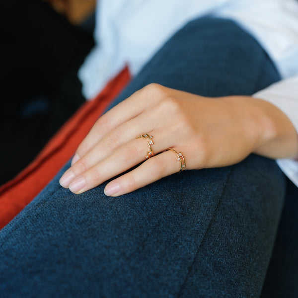 When using products like hand gel, cream, perfume or applying makeup, we recommend removing your piece to avoid stains and wear on the delicate materials and gemstones.