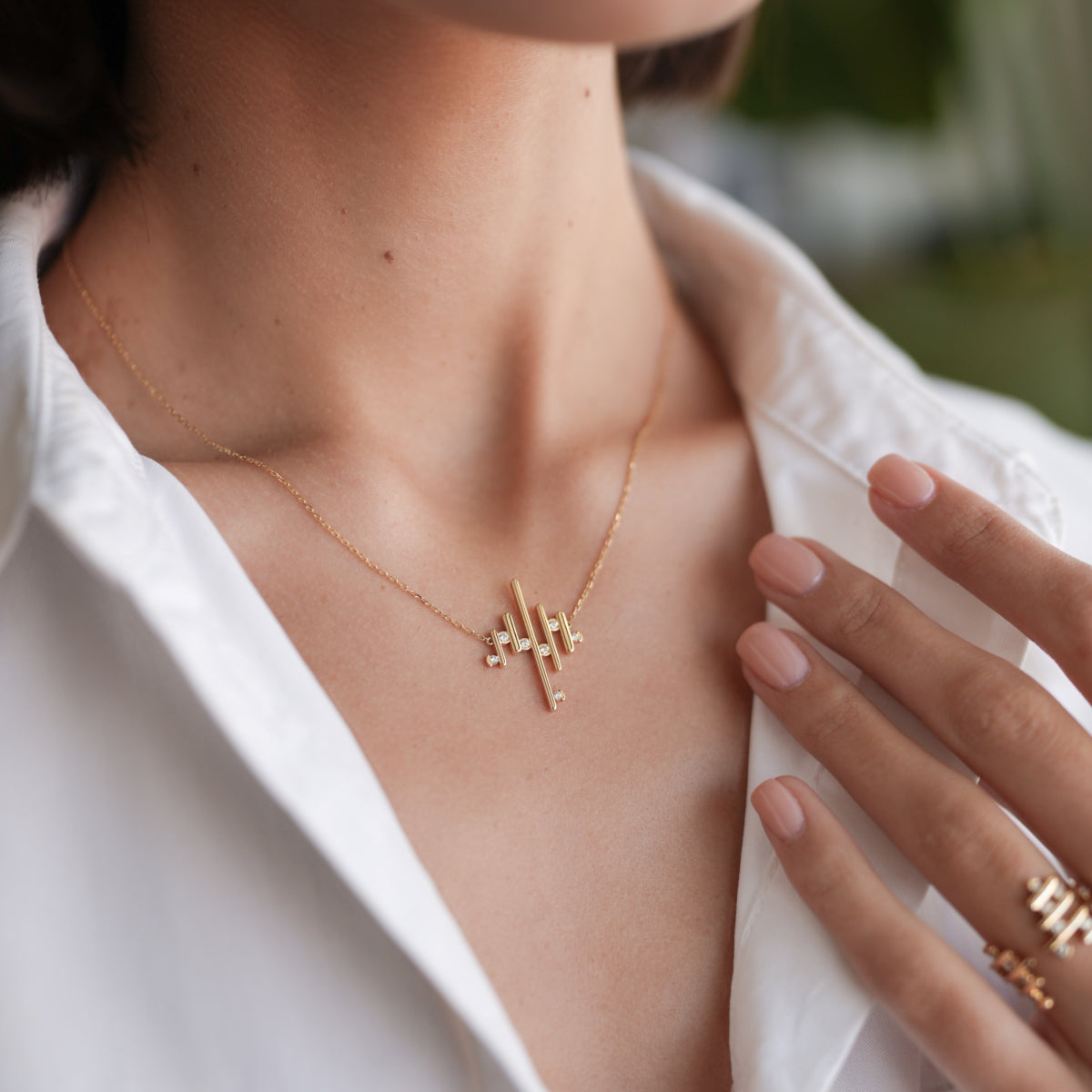 When using products like hand gel, cream, perfume or applying makeup, we recommend removing your piece to avoid stains and wear on the delicate materials and gemstones.
